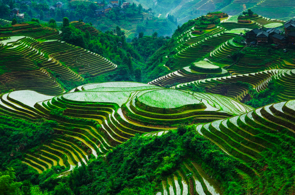 Terrazas de arroz de Longsheng en China: Las conocidas Terrazas de la Columna del Dragón abarcan más de 100 kilómetros en la zona de Guilin, es zona protegida y la cuidan grupos étnicos que viven en el lugar. La zona se encuentra a 100 metros de altura, por lo que disfrutar de la vista seguramente te enamorará.
