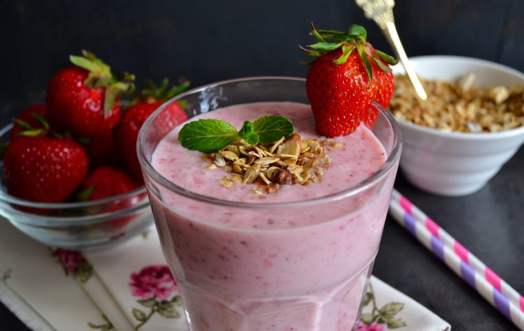 Mezcla 2 tazas de leche de almendras con ⅔ de taza de avena, 14 fresas y una cucharadita de esencia de vainilla; puedes agregar canela al gusto. La vitamina B1 de este licuado gracias a la avena, ayudarán a tus pequeños a evitar problemas de concentración ya que mejora el funcionamiento de sus sistema nervioso.