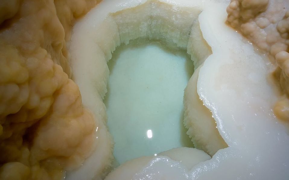 El equipo de investigadores tomo las precauciones necesarias para asegurarse de que no se introdujeran contaminantes en estos cuerpos de agua, la piscina parece un pequeño lago lechoso rodeado de roca blanca, se cree que el agua cristalina es agua filtrada de las lluvias.