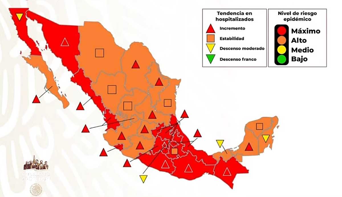 Por los índices de ocupación hospitalaria los estados que permanecerán en color rojo son: