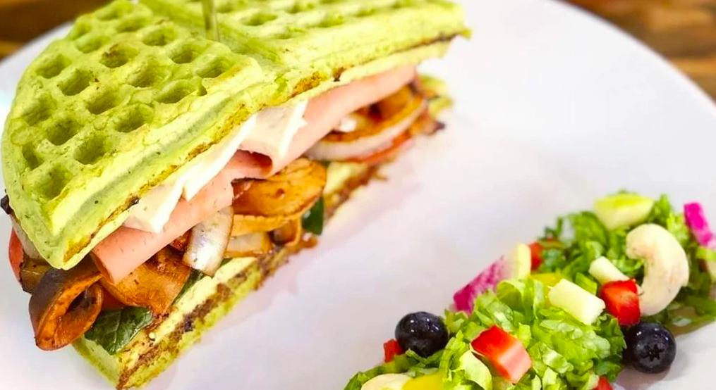 Vegamo: Nos a conquistado con su delicioso sándwich de waffles verdes de queso, champiñones y por supuesto mucho aguacate. Su menú saludable cuenta también con una hamburguesas de betabel y garbanzos para los antojos más grandes. Puedes pedir al 55- 2676- 5272